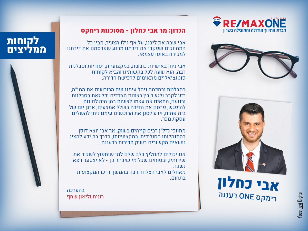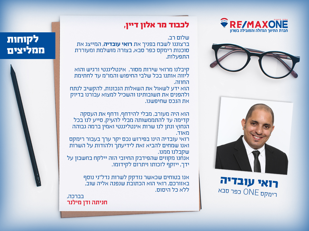 קבוצת רי/מקס ONE - מכתבי המלצה